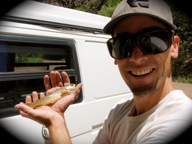 First impressions? Way more beautiful than I expected. Rifle is a long canyon with 60-80m high limestone walls on either side (which means there's always shade, even in summer) and a rushing alpine stream running through the middle. The stream is conveniently filled with brown trout so you'll share the campsite with fisherman and camping families. Bring your fishing gear or buy a complete setup for $16 at Wal-Mart like I did.